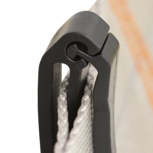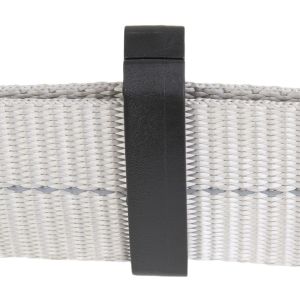Разъемная пластиковая шлевка предназначена для фиксации свободных концов лент после регулировки привязи.