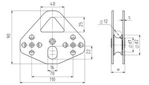 Блок с двумя расположенными в ряд роликами, фиксированными щёчками, роликами из нержавеющей стали с запрессованными шарикоподшипниками.