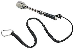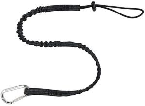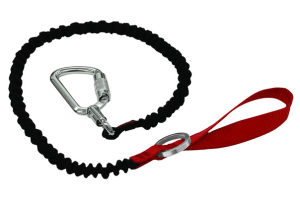 Готовый к использованию комплект для удержания инструмента, состоящий из стропы и карабина.