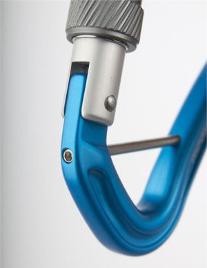 Дюралюминиевый карабин с винтовой (резьбовой) муфтой и защелкой типа keylock.