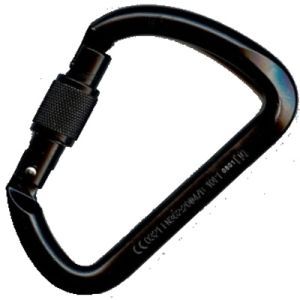 Карабин из алюминиевого сплава, доступен с прямой защелкой, изогнутой защелкой или винтовой муфтой. D-форма распределяет большую часть нагрузки на основную ось карабина.