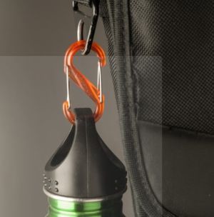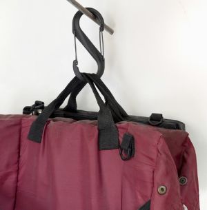 Удобный двойной карабин из пластика для крепления мелких аксессуаров.
