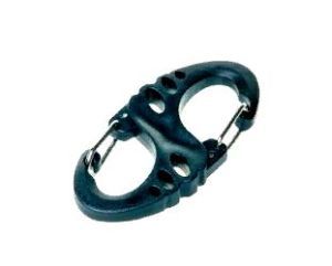 Удобный двойной карабин из пластика для крепления мелких аксессуаров.