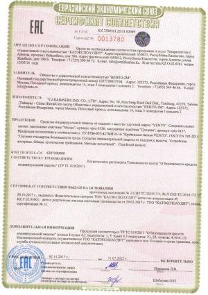 - Сертификат ГОСТ: 12.4.225-99.