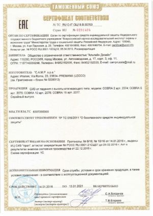 Блокирующее устройство с втяжным тросом длиной 20 метров и диаметром 4 мм предназначено для обеспечения непрерывной страховки работника на высоте.