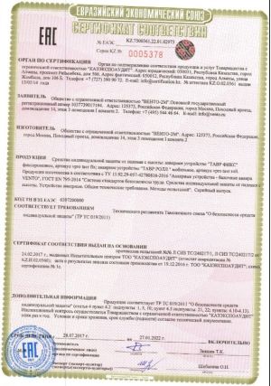 Устройство предназначено для использования только в составе систем обеспечения безопасности от падения с высоты.