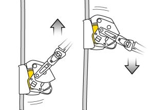 Для быстрого отсоединения от рабочей веревки и спускового устройства необходимо опустить фиксаторы вниз и нажать одновременно обе кнопки.