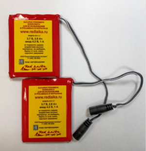Такой аккумулятор входит в комплект всей одежды с подогревом RedLaika.