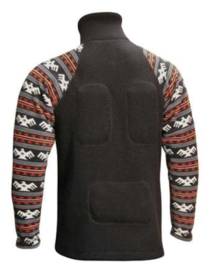 Фуфайка из шерсти мериносовых овец, с инфракрасным подогревом, украшена рукавами из флиса с орнаментом.