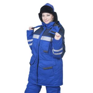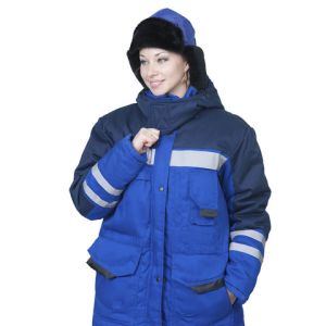 Женский утепленный костюм "Зима" с подогревом подойдет для работы на холоде. Костюм выполнен в васильковом и тёмно-синем цвете.