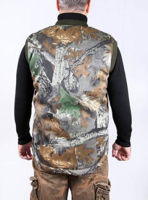 Охотничий жилет с инфракрасным обогревом RedLaika RL-H-05 из смесовой ткани камуфляжной расцветки "Дубок" из новой коллекции расцветок одежды для охоты.