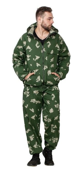 Костюм маскировочный летний, выполнен из хлопковой ткани, состоит из куртки и брюк.