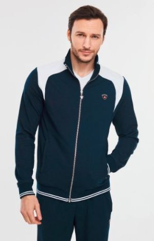 Спортивный костюм состоит из олимпийки и брюк, выполненных из текстиля с сетчатой подкладкой.