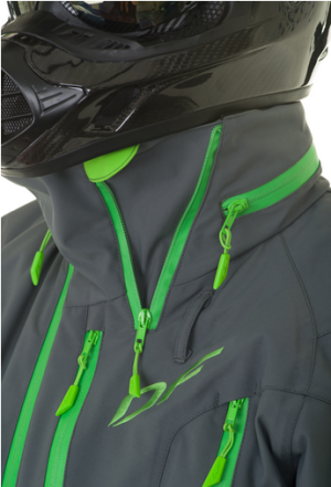 Главная отличительная особенность данного изделия в максимальной защите от влаги и вентиляции за счет полностью раскрывающихся боковин куртки, защищенных влагостойкими молниями.