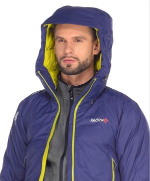 Пуховик с синтетическим наполнителем для покорения горных вершин.