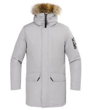 Первая городская мужская пуховая куртка с удлиненным силуэтом и капюшоном для использования в условиях очень низких температур.