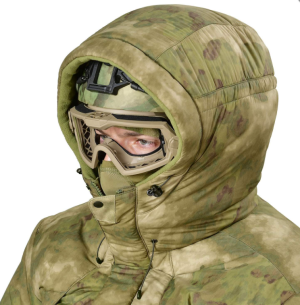 Легкая, теплая, прочная куртка может одеваться как поверх снаряжения, так и под него. Капюшон-воротник может использоваться, как со шлемом, так и без него.