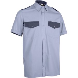 Рубашка охранника с коротким рукавом. Благодаря составу ткани рубашка держит форму и сохраняет внешний вид.