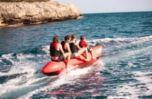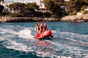 Надувной, водный банан или водные сани , предназначен для транспортировки по воде, буксировочным катером, с целью разнообразить пляжный отдых. Используется как экстремальный аттракцион на воде. Вытянутая, обтекаемая форма обеспечит до 3 посадочных мест.