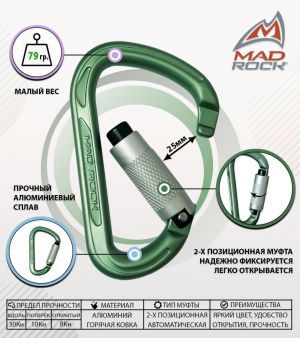 Скалолазный легкий карабин Mad Rock Hulk HMS Twist Lock