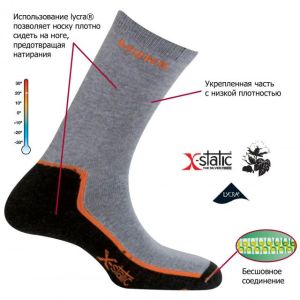 Носки для треккинга и любого активного отдыха в теплых условиях. Подходят для температуры от 0 °C до +20 °C. Носки могут использоваться как вкладыши в более тёплые носки.