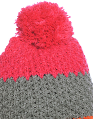 Шапка для повседневной носки. Модный дизайн с полосками и большим помпоном.