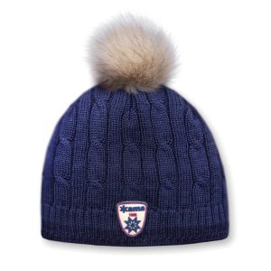 Вязаная шапка с помпоном Kama изготовлена из теплой комбинированной ткани из акрила и шерсти и утеплена внутри флисовой повязкой.