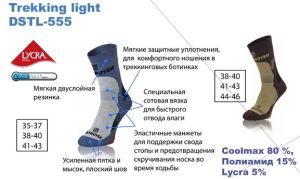 Современные треккинговые носки (или термоноски) не только прочны, но и обладают функцией поддержки стопы, препятствуют развитию бактерий и появлению запаха, «дышат» и отводят влагу, сводя к минимуму вероятность образования мозолей.