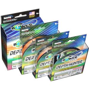 Высокотехнологичный разноцветный плетеный рыболовный шнур PowerPro Depth Hunter - разработан в Японии и произведен в США, Шнур окрашен в 4 цвета (синий/желтый/зеленый/оранжевый), повторяющиеся через каждые 30 метров.