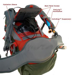 Рюкзак со встроенной системой AvaLung для лыжников и сноубордистов. Система креплений для лыж.