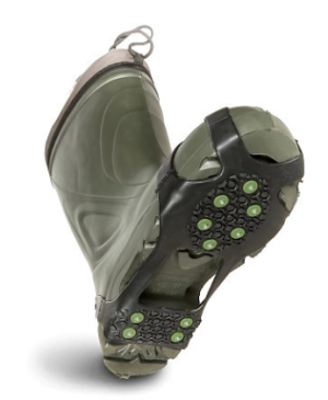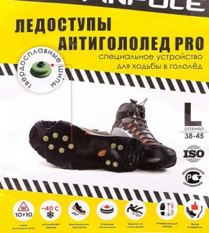 Изделие надевается прямо поверх любых ботинок или сапог и делает ходьбу по гололеду безопасной и комфортной.