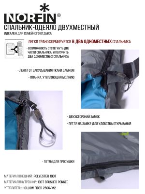 Мешок-одеяло спальный Norfin Alpine Comfort Double 250 (комфорт +10)