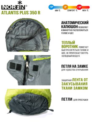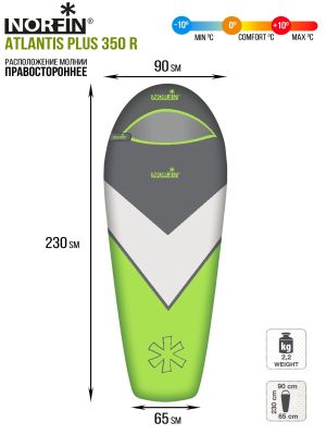 Мешок-кокон спальный правый Norfin Atlantis Plus 350 R (комфорт +10)