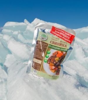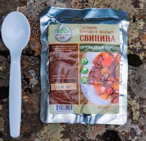 Готовый обед туриста Кронидов "Свинина со сладким перцем" - это сытное мясное блюдо, готовое к употреблению.