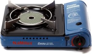 NaMilux NA-PL1957PF - портативная газовая плитка с переходником работает от двух типов баллонов: одноразового 220 г баллона или от бытового пропанового баллона от 5 до 50 л.