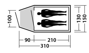 Двухместная палатка с классической формы, включающей внутреннюю палатку и тамбур.