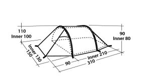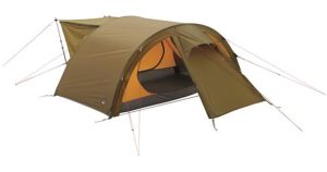 Классическая палатка в виде туннеля имеет большой тамбур для хранения вещей.