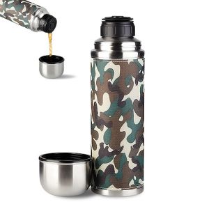 Термос с лямкой для транспортировки, удобной ручкой и двумя чашками обеспечит любимым напитком на пути к Вашей цели.