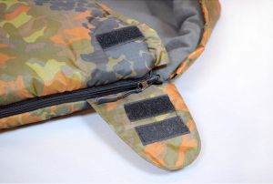 Очень тёплый спальный мешок-кокон камуфляжной расцветки.