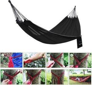 Гамак подвесной из полиэстеровой сетки.