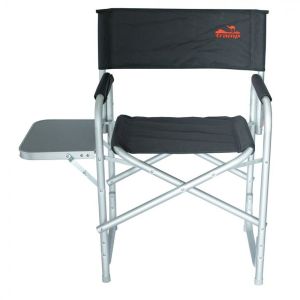 Удобный складной стул с мягкими подлокотниками и столиком в комплекте.