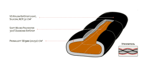 Легкий синтетический спальный мешок.