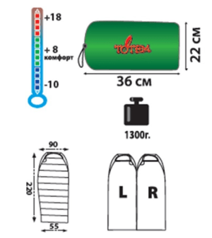 Теплый спальный мешок с левой молнией Talberg Bussen Wide -11 (комфорт +9C)