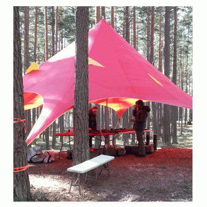 Яркий и нестандартной форм шатер-тент для выездных мероприятий.