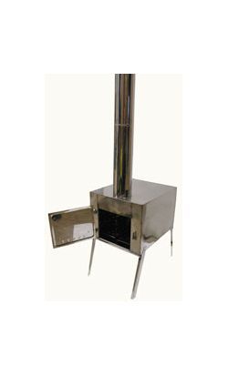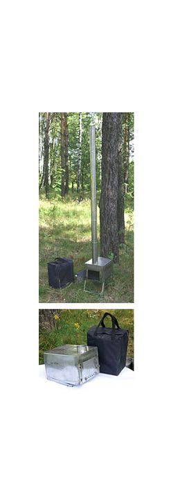 Несколько моделей разборных туристских печек. Внутренний искрогаситель предохраняет кровлю помещения от попадания искр. Варочная поверхность может использоваться для кипячения воды и приготовления пищи.
