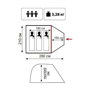 Комфортная трёхместная палатка с большим внутренним объемом.