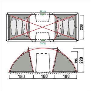 Большой и высокий тамбур для комфортного отдыха. Палатка легко и быстро устанавливается.