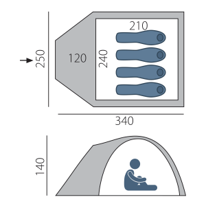 Большая палатка подходит для большой компании от 4 до 6 человек. Оснащена 2 отдельными спальнями.