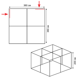 - Размер: 180х180х200 см.