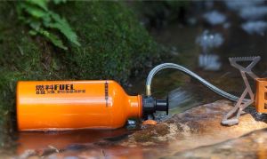 Удобная фляга для хранения жидкого топлива для мультитопливных горелок.